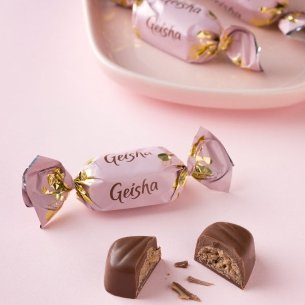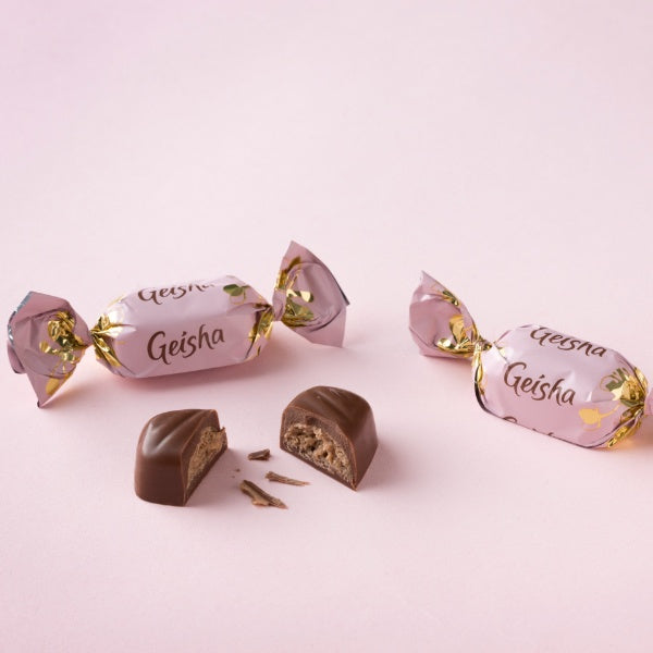 Tauche ein in den zarten Genussmoment mit Fazer Geisha – der feinen Praline aus hochwertiger Milchschokolade und einer einzigartig weichen Haselnuss-Schokoladenfüllung. Seit 1962 steht Geisha für harmonischen Geschmack, der weich und doch knusprig ist – ein unverwechselbares Erlebnis für alle Sinne.