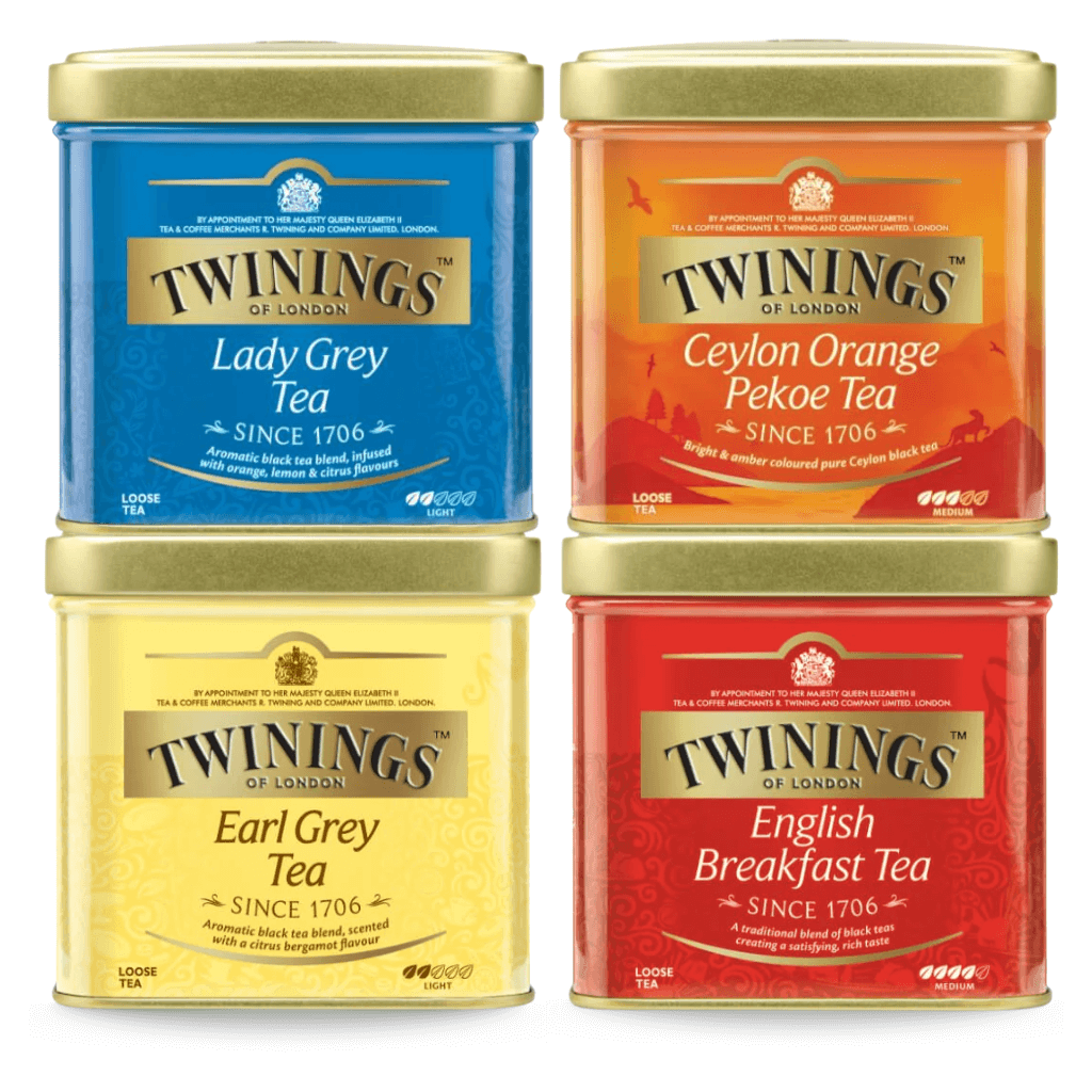 Twinings Schwarztee Probierpaket - Auswahl loser Twinings Tees in der Dose (4x100g)
