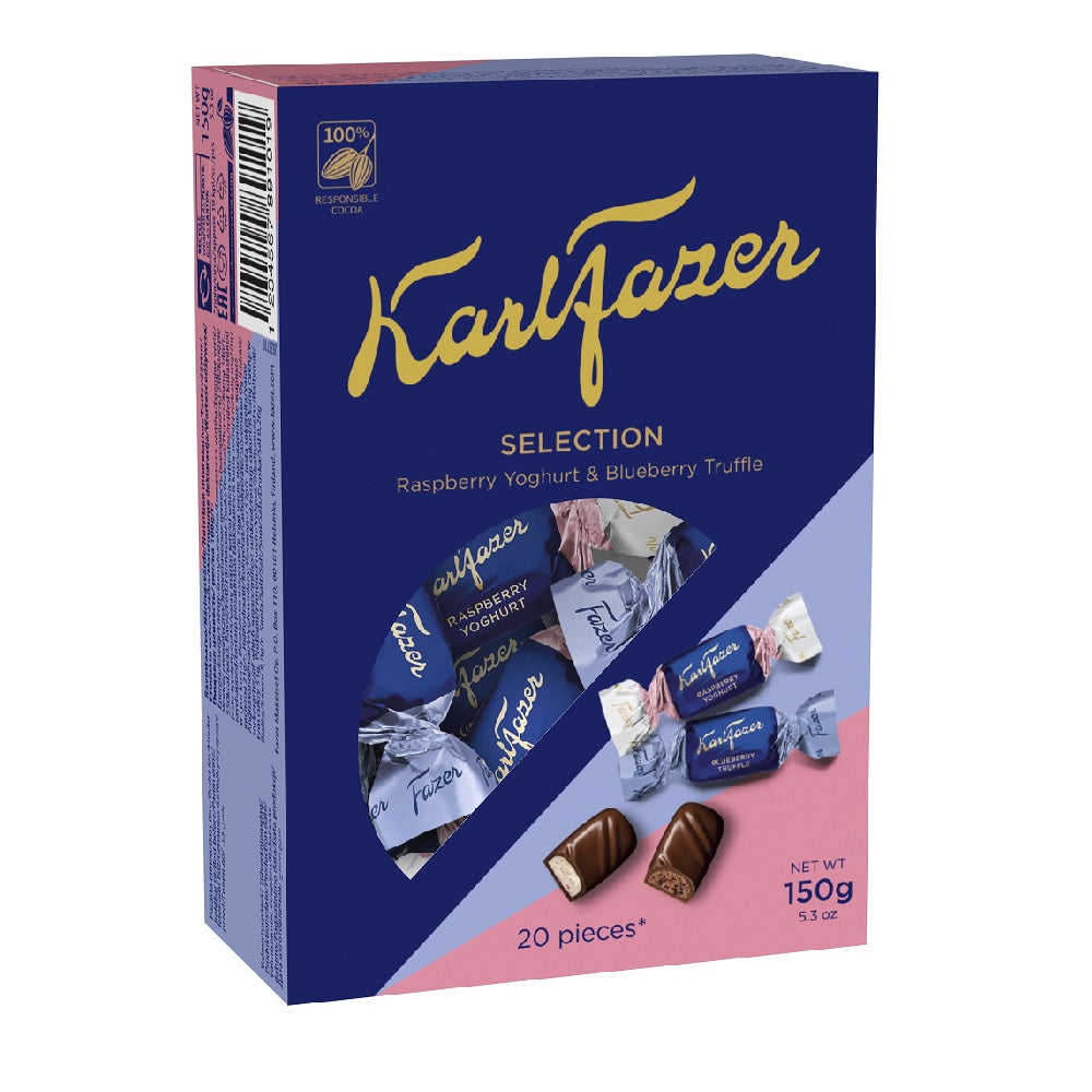 - Exklusive Geschmacksvielfalt: Die Karl Fazer Selection bietet Dir eine feine Auswahl feiner Schokoladenpralinen: Himbeer Yoghurt und Blaubeer Trüffel. Die Kombination aus cremiger Yoghurtfüllung und feinen Himbeerstückchen oder der zartschmelzenden Trüffel-Schokoladenfüllung mit knusprigen Blaubeerstücken bietet ein unvergleichliches Geschmackserlebnis.