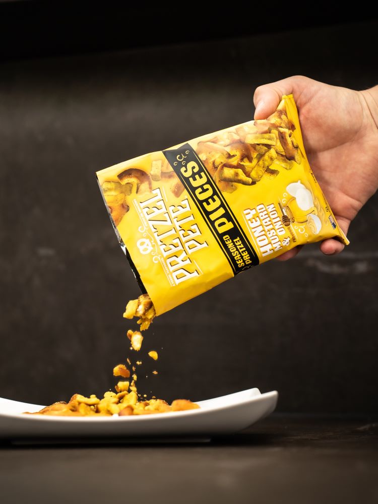 Selbstverständlich kannst Du die zerkleinerten Pretzel auch für Dich allein genießen – als aufregende Alternative zu Flips, Chips und Salzstangen.