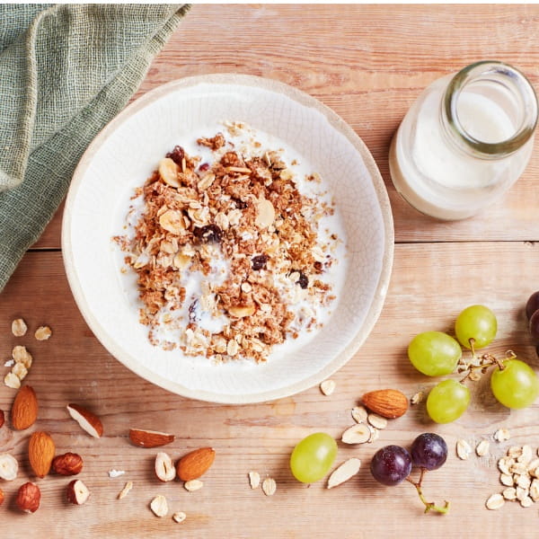 - Köstliche Kombination - Weiche Haferflocken, knusprige Vollkornweizenflocken, geröstete Mandeln und Haselnüssen und saftige Rosinen sorgen für den idealen Start in den Tag